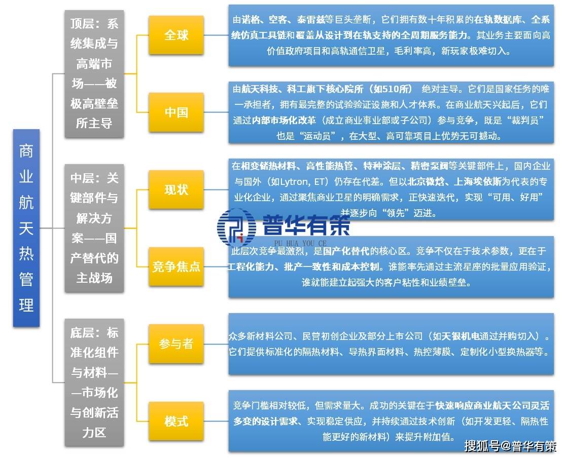 北京普华有策信息咨询有限公司《“十五五”商业航天热管理产业深度研究及趋势前景预判报告》对商业航天热管理(TMS)行业进行了全景式深度扫描。报告开篇明义,对行业进行了权威定义,并梳理了其从国家配套到商业崛起的演进历程。核心部分聚焦于产业链,详析了上游特种材料与核心部件的“卡脖子”现状及国产化影响,以及下游星座爆发对行业的直接拉动。报告深入刻画了“国家队主导、民企创新追赶”的立体竞争格局,识别出关键玩家及其核心竞争力。通过结合最新政策与前沿技术,系统阐述了需求刚性增长、国产替代、AI赋能等核心驱动因素。最后,报告前瞻性地预判了智能化、轻量化、低成本化等发展趋势,并剖析了技术、认证、供应链等构成的高耸行业壁垒,为把握这一战略性新兴产业的投资机遇提供了坚实依据。